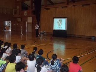 7月10日(月)、県民の日集会が行われました。(「えっ?今頃?」なんて言わないでくださいね。)今年は、子どもたちの計画、準備、運営によって開かれたのです。栃木県の木や鳥、特産物などが、クイズで楽しく紹介されました。校長先生からは、とちまるくんについてのお話がありました。司会やクイズの出題、パソコン操作など大変上手に行われ、児童の手による素晴らしい集会となりました。