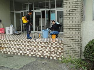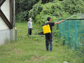 8月5日、本日はPTA事業部の皆さんによる除草剤散布がありました。朝6:00より校庭周辺部を中心に念入りに作業をしてくださいました。特に今年は農園の草がすごい勢いで伸びてしまいましたが、作物を除いた箇所を隅々までやってくださいました。本当にありがとうございました。