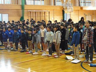 「友だちはいいもんだ」を全校生で歌いました。寒い体育館でしたが寒さを吹き飛ばす元気な歌声と友だちを思いやる歌詞の内容に心を打たれました。