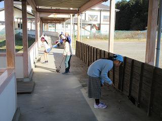 1~6年生のなかよし班で清掃場所を分担し、活動しています。今回は、体育館と体育館通路です。