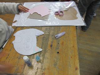 「でこぼこもようのなかまたち」で、包み紙や和紙などの凹凸を使って昆虫や動物を表現していました。