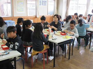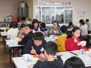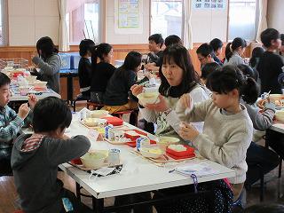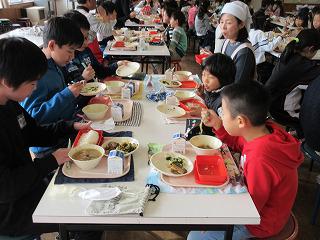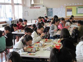 「ごはん、牛乳、サンマのみぞれ煮、おひたし、いなか汁」です。昨日と今日は、1・6年生の交流給食でした。