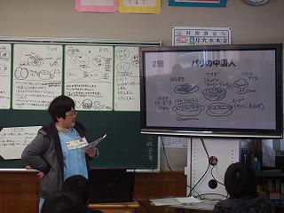 「バランスのよい献立を考えよう」の学習で、グループで1食分の献立を考えました。はじめは「まるで給食?」と思うような「真面目な」献立を作っていた6年生ですが、「もうちょっと遊び心を入れて」と言ったとたんにみんなの欲望が炸裂。ドリアにクレープにショートケーキ・・・と豪華絢爛なごちそうメニューになってしまいました。シャトーブリアンのステーキや黒毛和牛焼き肉のトリュフ乗せなんてすごい料理も飛び出しました。この献立を、栄養教諭の先生に査定してもらうという授業です。