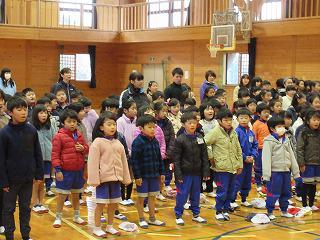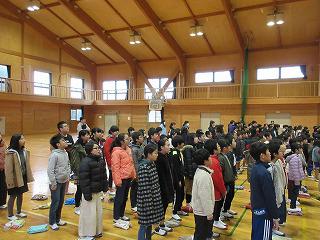 体育館はかなり冷え込んでいました。夏休みから最近までの各種コンクールや大会等での表彰の後、全校合唱をしました。人権週間の最後なのでビリーブを全員で歌い、心が温まりました。