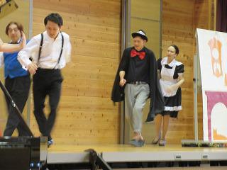 移動音楽鑑賞教室「混声四重奏と遊ぼう!!」が体育館で行われ、6年生も壇上に上がりました。オペラ「セヴィリアの理髪師」では、男性職員が登場し盛り上がりました。
