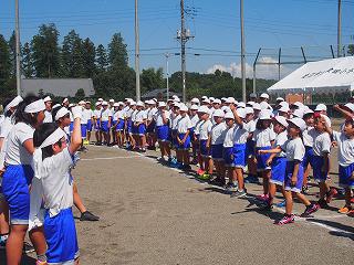 2学期に入ると、運動会の係ごとに打合せや練習等が始まりました。応援団の6年生は、4年生以上のメンバーと一緒に全体練習で先頭に立ってがんばりました。