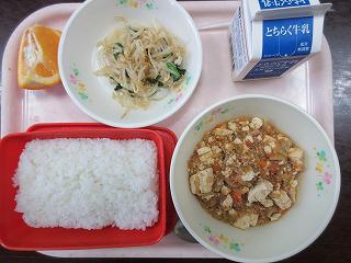 「ごはん、牛乳、マーボー豆腐、ナムル、いよかん」です。また、今週は、恒例の食べ物クイズ週間です。子どもたちに、次の問題が出されました。130年前に山口県で偶然見つかったいよかんは、伊予国でたくさん栽培されるようになったので「伊予国のみかん」から「いよかん」よ呼ばれるようになりました。では、この伊予国は現在の何県か?