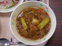 今日の給食の献立は、丸パン、メンチカツ、ツナサラダ、コーンポタージュスープでしたが、6年生には特別メニューによる給食を提供しました。