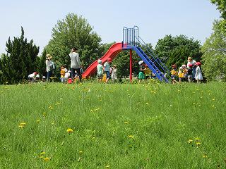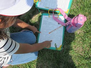 まぶしい太陽の光を浴びて、25名の1年生が松原にある「ライオン公園」に探検に出かけました。先生からの指令は、公園にあるものをビンゴカードを見ながら見つけること。いい匂いがするものや木になっている実を見つけたり、滑り台で遊んだりトンネルのヒミツを探ることなどです。子どもたちは、となりのトトロに出てくるメイちゃんのごとく、ダンゴムシを見ていたと思ったらあっという間にトンネルのところに駆けていったりして、ビンゴゲームに夢中になっていました。