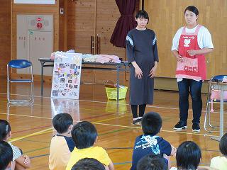 まず、前半は赤ちゃんの誕生について、助産師さんや妊婦さんから話を聞いたりお腹に触れさせていただいたりしました。また、お母さんのお腹にある卵子の大きさを予想したり、妊婦さんのお腹の中にいる赤ちゃんの鼓動を聞いたりしました。
