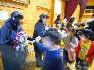 次は、人形劇「カエルのおよめさん」。料理も裁縫も上手なカエルが、王様の息子のおよめさんになれるか、オリジナルの曲と脚色で、子どもたちを楽しませてくださいました。まざあぐうすのみなさん、ありがとうございました。
