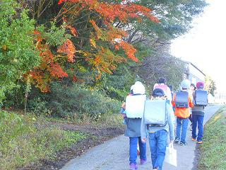 朝晩の冷え込みが厳しくなってきました。今朝は雲一つない青空、松原からの通学路では紅葉し始めたモミジの下を通って、子どもたちが登校しました。