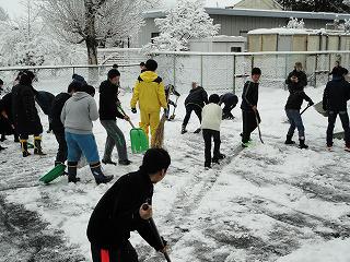 また雪でした。周りの景色は美しくて素敵ですが雪かきを考えると憂鬱になります。そんなとき救世主が現れました。6年生の勇者です。30分かかることなく1時間目の授業前に駐車場、昇降口前の雪を除去してくれました。6年生はこんな活躍もしてくれています。