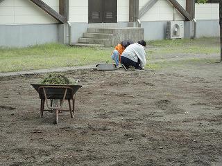 5月8日 朝9:00から自主的に結成された「除草ボランティア」の皆様が何と12時まで3時間みっちりと除草してくださいました。慣れた手さばき、身のこなしであっという間に気になっていた校庭の箇所がきれいになりました。本当にありがとうございます。