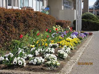 校内では、先生方による新学期の準備が。そして、校庭には春の訪れがあちこちに見られるようになり、華やいできました。間もなく新学期です。