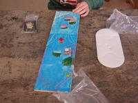 3年生が図工の時間にビー玉を転がして遊ぶスライダーゲームを作っています。