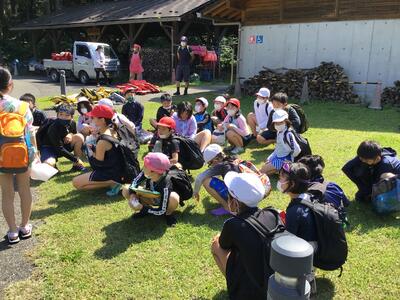 もう食べ終わっている子がいます。午前中いっぱい活動したので、エネルギーの補給が必要です。。午後の活動は何でしょうか。
