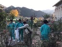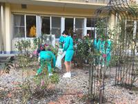 11月19日(水)環境委員会の生徒とバラボランティアの方々が一緒にチューリップの球根植とバラの花柄摘みを行いました。