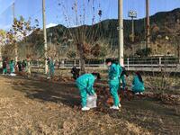 11月26日(水)全校清掃を行いました。校庭のプラタナスや桜の落ち葉を集めました。