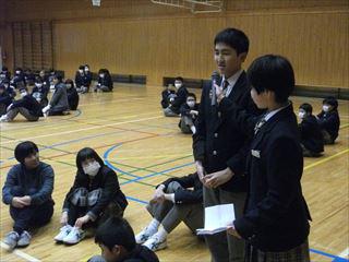 そして、校長先生からは新3年生に新たな伝統づくりと進路への心構えについての話、