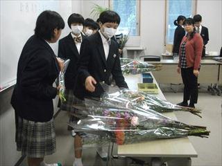 今日は放課後に各学年の生徒たちが生け花を体験しました。