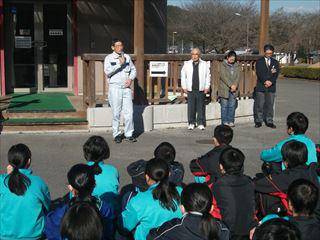 1組と3組は運動公園での作業のため、掃除の前に管理している方へのあいさつです。