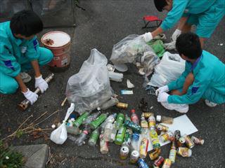 たばこの吸い殻、空き缶の他に未開封のペットボトル、大型のポリタンクなど・・・。
