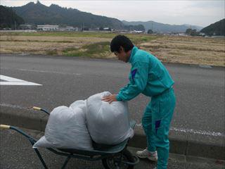 一輪車で袋に詰めた雑草や落ち葉を運ぶなどそれぞれの役割を果たす