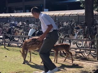 奈良公園で東大寺を見学し、鹿たちと触れ合いました。