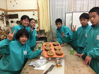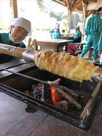 午前中の活動は、クラス別活動です。1組はバウムクーヘンづくりに挑戦しました。