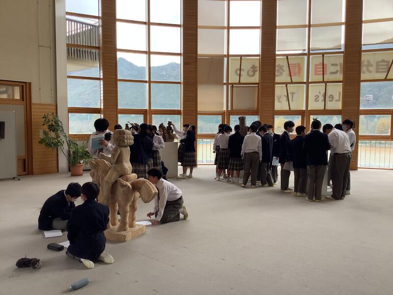 11月6日(月)粟野中学校学習センターにて、2名の作家さんによる鑑賞授業が行われました。本物の作品を目の前にし、作家さんの作品への思いを生で聞くことができ、生徒達は、真剣に鑑賞していました。