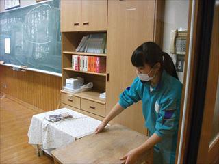 高いところにある窓や教室のドア、大きな窓の汚れを丁寧に落としていました。