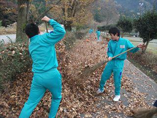 さて、2組は学校周りの落ち葉掃き、除草作業です。