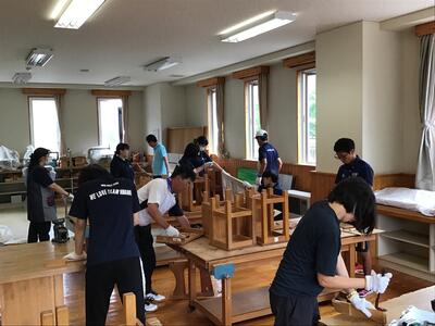 部屋や施設の中の清掃を各自丁寧に行っていました。