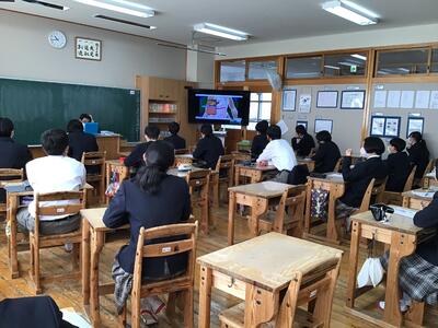 12月23日終業式の日の3時間目に、保健委員の生徒が中心となり、司会進行しながら、薬物乱用防止教室がzoomで行われました。