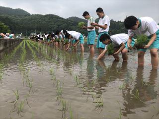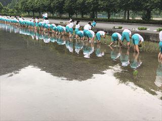 その後、裸足で田んぼに入り、苗を植えていきました。