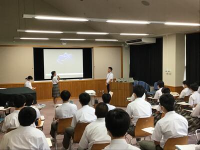 夏休み中に頑張った結果を表彰しました。部活動の県大会での活躍について表彰がありました。