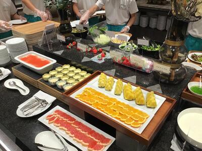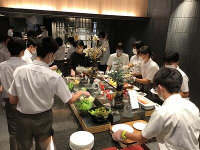 ホテルの料理長さんこだわりの料理が並び、子どもたちは料理をたくさん食べました。