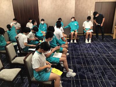 修学旅行では、その日の反省と明日の予定を確認する部屋長会議を開催します。