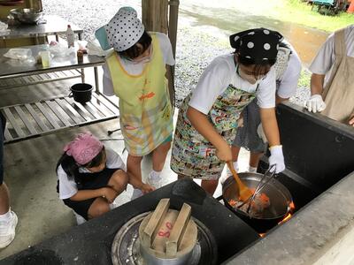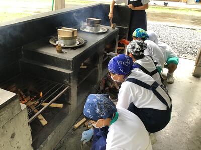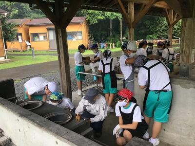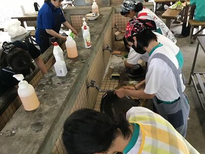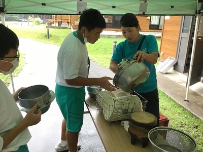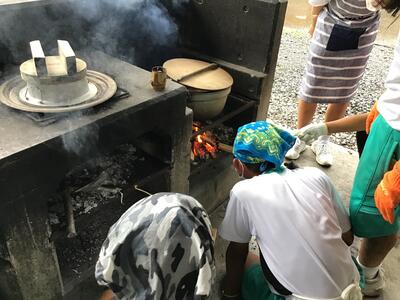 食事の後は使用した調理器具を丁寧に洗い、かまどの清掃を行います。
