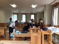 部屋や施設の中の清掃を各自丁寧に行っていました。