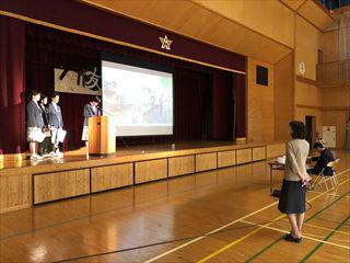 最後に中学生と出演者で粟中の校歌と、粟中エールを歌いました。出演者からは「立派な校舎とたくさんの美術品が展示してあってすごい」「真剣に観てもらい嬉しかった」「歌が上手ですね」と褒めていただきました。