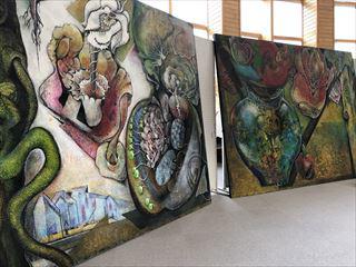 オープンスクールで展示される関口聖子さんの絵画が搬入されました。素晴らしい作品の数々です。