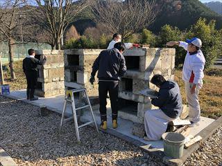 オープンスクール実行委員やPTAの方々の協力により、粟野中学校にピザ窯が3基完成しました。当初の予定では秋フェスでピザをつくって提供するはずでしたが、秋フェスの中止に伴い、ピザ窯の完成も今日にずれ込んでしまいました。
