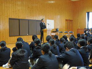 式は学校長の話、生徒代表2学期の反省、そして大きな声で校歌を斉唱しました。