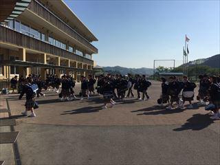 生徒達は新しい生活にもなじみ、今日も元気いっぱい登校しました。