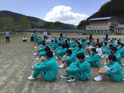 4月24日(水)〜26日(金)1年生が、自然体験交流センターで自然生活体験をスタートしました。この活動のねらいは、集団生活を通して友人との絆を深める。地域の豊かな自然に触れ、郷土を理解する。宿泊を伴う共同生活を通し、中学生らしい行動や規律の大切さを学ぶ。として取り組んでいきます。