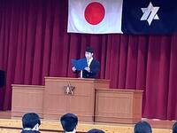 粟野中生徒会会長が歓迎のことばを伝えました。