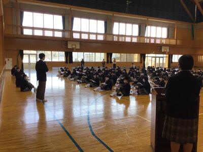 4月10日(水)生徒会長から生徒会役員の活動内容を伝え、各種委員会の委員長からは、生徒自身が学校をよりよくするため「活動内容について」の説明がありました。