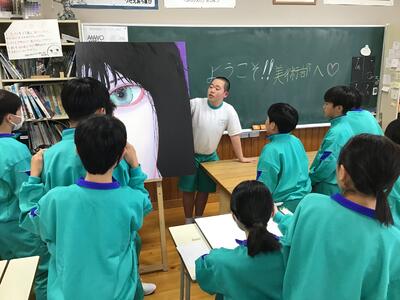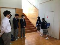 校長先生をはじめ5名の先生方より挨拶をいただきました。「粟野中学校に来て、自然や校舎内もとても綺麗で、芸術作品が多数展示され、学習環境の素晴らしさに感動しました。」と、どの先生も粟野中学校の印象を伝えていました。
